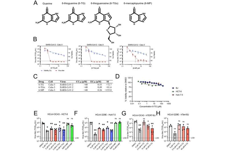 研究人员在最近的一篇论文中概述了他们的发现,他们使用了普通的感冒冠状病毒,他们在萨斯喀彻温省和卡尔加里大学的同事正在评估6-TG对SARS-CoV-2的影响。他们测量了被病毒感染的细胞和被药物治疗的细胞产生的病毒量。在处理过的细胞中复制的数量非常低。