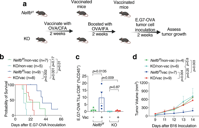 Nelfb敲除损害T细胞的抗肿瘤功能和疫苗接种后的免疫反应