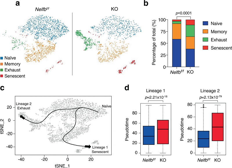 Nelfb敲除导致记忆T细胞数量的减少和耗竭的增加