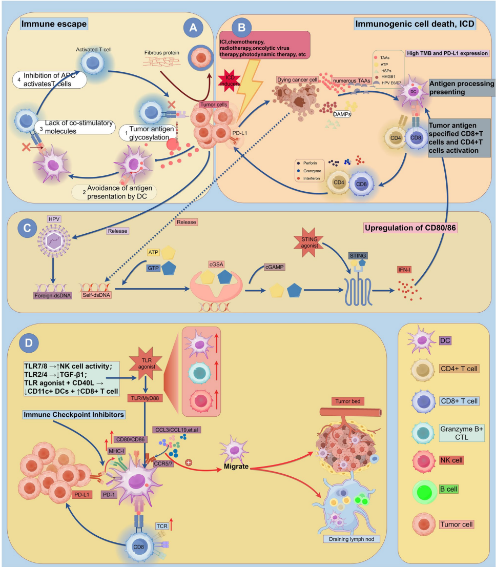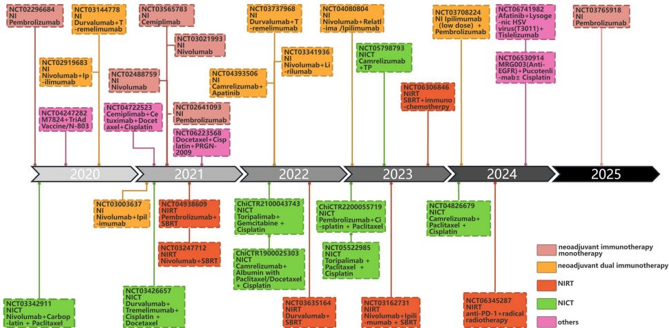 本综述系统梳理了头颈部鳞状细胞癌(HNSCC)新辅助免疫治疗(NIT)的最新临床研究进展。文章深入探讨了如何通过增强抗原呈递、优化T细胞启动与扩增、重塑肿瘤微环境(TME)等策略(如靶向PD-1/PD-L1、CTLA-4、CXCL12/CXCR4轴等)来提升NIT疗效,并指出了当前机制研究的局限性及未来个性化治疗(如联合表观遗传调控、新抗原疫苗等)的发展方向,为改善局部晚期HNSCC患者预后提供了重要见解。