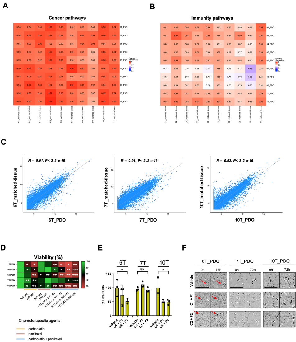本研究针对子宫内膜癌(EC)发病率上升、异质性高且治疗响应预测工具缺乏的临床挑战,成功构建了患者来源类器官(PDOs)平台。研究发现EC-PDOs在组织学、基因组和转录组层面高度模拟原发肿瘤,且对卡铂+紫杉醇标准化疗及PI3K/AKT/mTOR通路靶向药物(如Gedatolisib、Alpelisib)的响应与患者临床结局一致。尤为重要的是,研究首次分离并表征了匹配的癌相关成纤维细胞(CAFs),发现其对化疗耐药并可通过衰老相关分泌表型(SASP)促进肿瘤微环境(TME)重塑。该平台为EC个体化治疗筛选及TME机制研究提供了创新工具。