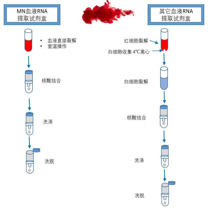 MN血液RNA抽提试剂盒流程优化处理后可直接用于血液样本RNA提取,新鲜和冻存血液样本均可适用。