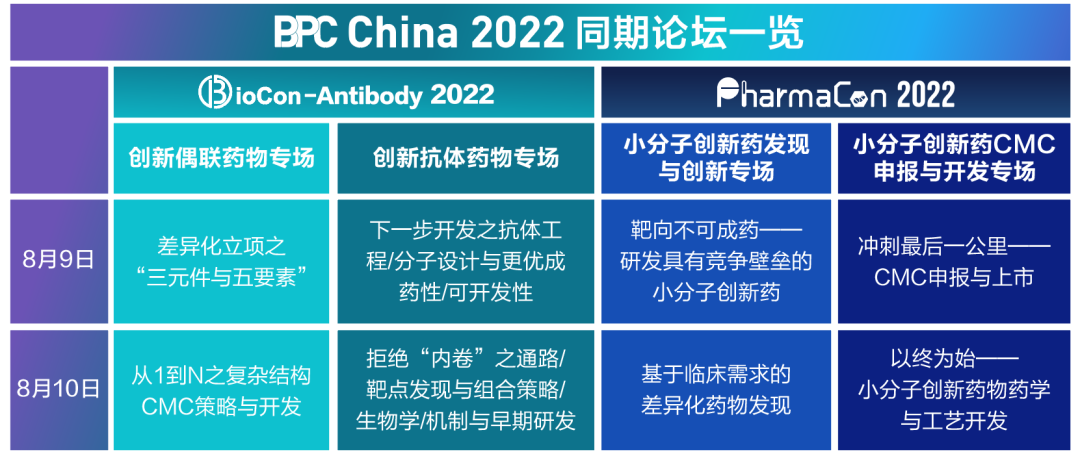 BPC 2022 第八届创新药系列专题会议将于2022年8月9-10日在南京全新亮相。