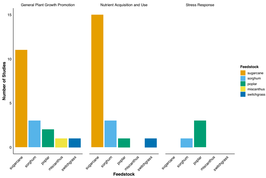 本综述系统探讨了合成微生物群落(SynComs)在第二代生物能源原料(如柳枝稷、芒草、高粱、甘蔗和杨树)微生物组中的应用前景。文章指出,尽管SynComs在促进植物生长、增强养分吸收(如生物固氮,BNF)和提升非生物胁迫耐受性方面潜力巨大,但其从受控试验到田间应用的转化仍面临挑战,主要源于系统复杂性和生态互作未被充分考虑。作者强调,未来设计应结合生态学原理,并利用新兴技术(如高通量筛选和自动化表型分析)来优化SynComs的持久性和功能,以支持生物能源农业的可持续发展目标。
