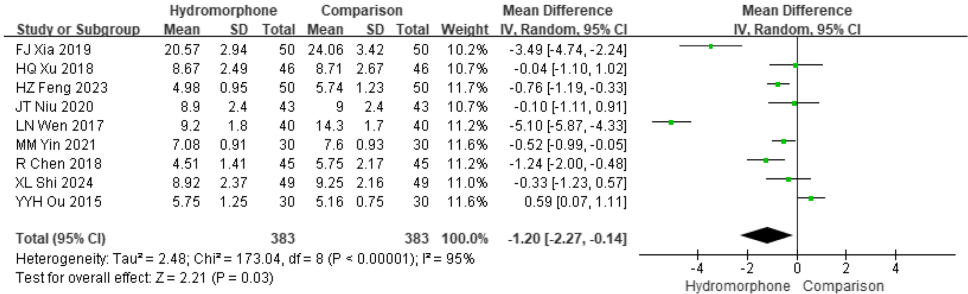 本综述系统评价了氢吗啡酮在腹腔镜胆囊切除术(LC)中预镇痛的有效性与安全性。通过对17项随机对照试验(RCTs)共1515例患者的荟萃分析显示,与安慰剂相比,氢吗啡酮能显著降低术后多个时间点(10分钟、30分钟、60分钟及12小时)的视觉模拟评分(VAS)(P<0.05),缩短自主呼吸恢复时间(MDA=-1.05)和拔管时间(MDE=-1.20),并降低苏醒期躁动(EA)发生率(ORR=0.17)。同时,氢吗啡酮能有效稳定术中血流动力学(心率、平均动脉压)并抑制炎症因子(IL-1、IL-8、TNF-α)水平,且术后恶心呕吐(PONV)发生率与对照组无显著差异。结论支持氢吗啡酮在LC围术期管理中的优势。