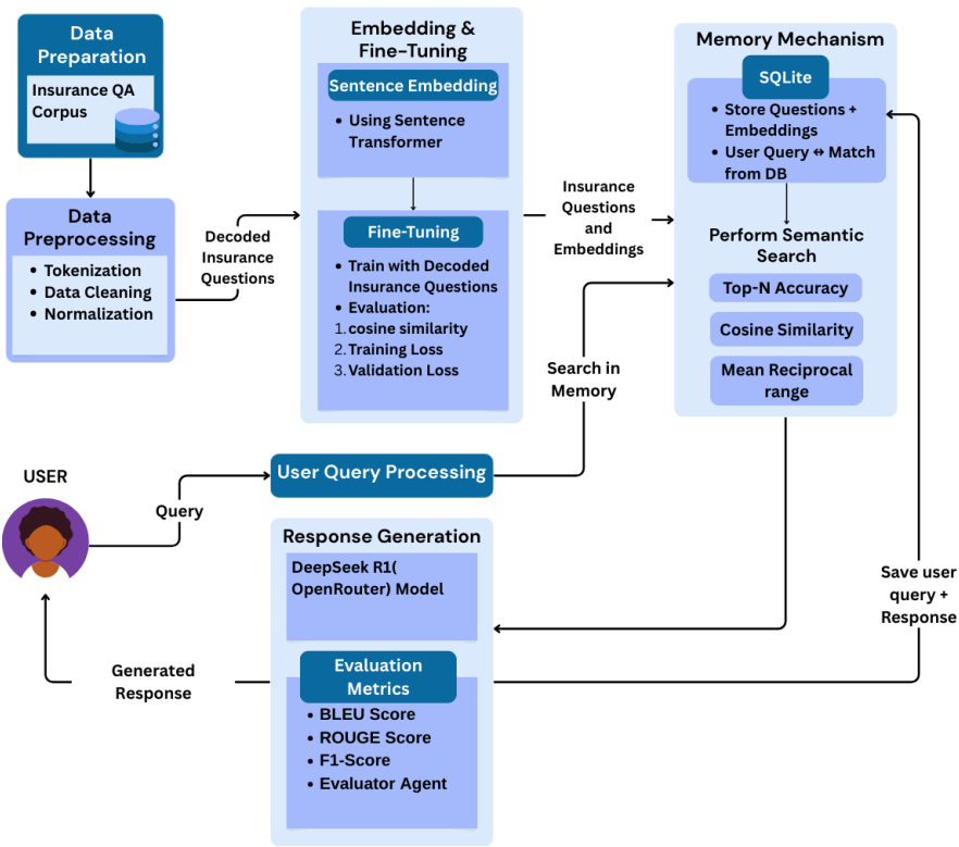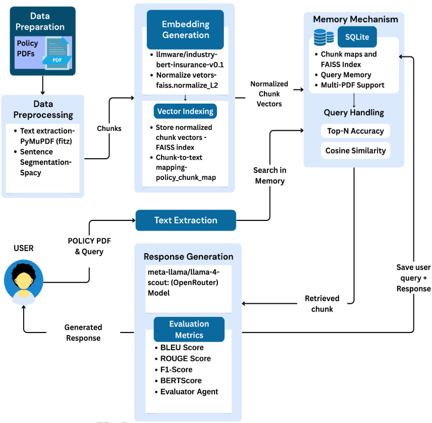 本文介绍了一项针对健康保险领域复杂政策理解难题的创新研究。为解决保险条款晦涩难懂、用户决策困难等问题,研究人员开发了一套基于检索增强生成(RAG)的多模块AI系统。该系统整合了保险聊天机器人、政策推荐引擎和文档检索三大功能,通过领域适应的语义嵌入和FAISS向量检索技术,实现了政策推荐命中率(Hit@5=1.0)和语义匹配(BERTScore F1=0.84)的优异表现。特别引入的评估代理模块可自动评估回复质量,显著降低了大语言模型的幻觉风险,为保险行业的智能化服务提供了新范式。