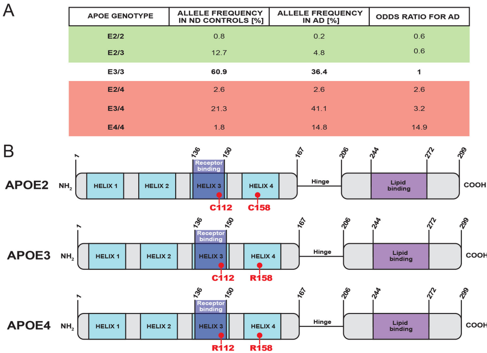 人类大脑作为高耗能器官,占体重2%却消耗全身20%能量。阿尔茨海默病(AD)作为最常见的神经退行性疾病,其病理特征包括β-淀粉样蛋白(Aβ)沉积和神经纤维缠结。APOE基因的ε4等位基因(APOE4)是散发性AD最强的遗传风险因子,而APOE2则具有保护作用。APOE不仅是脑内主要脂质载体,还参与免疫反应、突触可塑性和能量代谢调控。