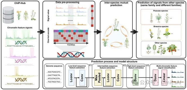 问题在于,要想系统地画出这些“便签”分布图,传统上需要做实验(比如 ChIP-seq),这类实验对成本、周期、试剂质量(尤其是抗体)、以及能否获取足够的特定组织/细胞样本都很敏感。对于很多非模式植物和农业重要作物来说,样本难、数据少、重复性也更难保证,于是出现了一个现实的“数据断层”:我们在少数研究充分的物种里有比较完整的表观组数据,但在大量作物或野生植物中几乎没有。于是就引出了一个核心问题:能不能利用“已有物种”的数据训练一个可迁移的计算模型,让它在缺少实验数据的物种里,也能较可靠地推断这些组蛋白修饰等表观特征?