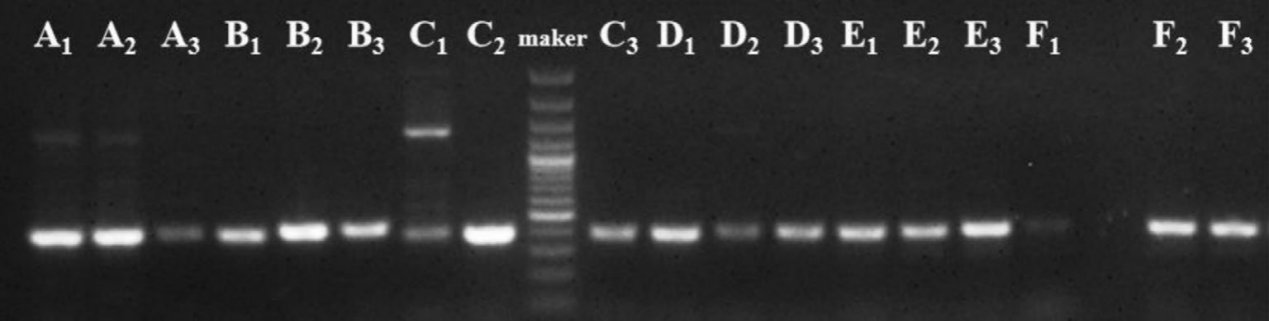 图3 粪便样本中提取的DNA凝胶电泳结果