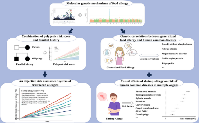 东亚地区虾过敏高发及遗传机制研究,揭示其与多系统疾病的因果关联,提出基于遗传风险评估的精准免疫干预框架。