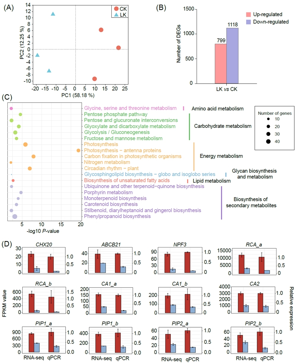 图2 研究中番茄对照组和缺钾叶片的转录组比较分析结果。
